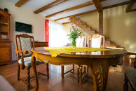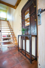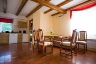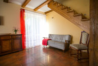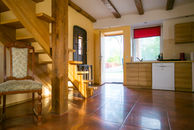 słoneczny, południowy apartament z dwoma łazienkami. na parterze salon z aneksem kuchennym z pełnym wyposażeniem, łazienka z umywalką i toaletą, na piętrze dwie sypialnie, łazienka z prysznicem, bidetem, umywalką i toaletą,